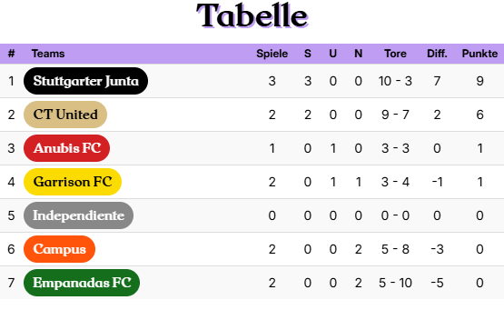 Mit großer Vorfreude bereiteten wir uns auf das nächste Spiel vor – unser erstes echtes Heimspiel. Die Organisation war gelungen: viele Zuschauer, Grill, Getränke und perfektes Wetter. Einziger Wermutstropfen war das Ergebnis – eine 0:3-Niederlage gegen Independiente. Darauf folgte jedoch eine Siegesserie, darunter ein episches 4:3 gegen Campus United (nach 3:0-Führung, 3:3-Ausgleich und dem Siegtreffer in der letzten Minute) sowie klare Siege mit 9:2 gegen Empanadas und 8:2 gegen BSG Polizei.