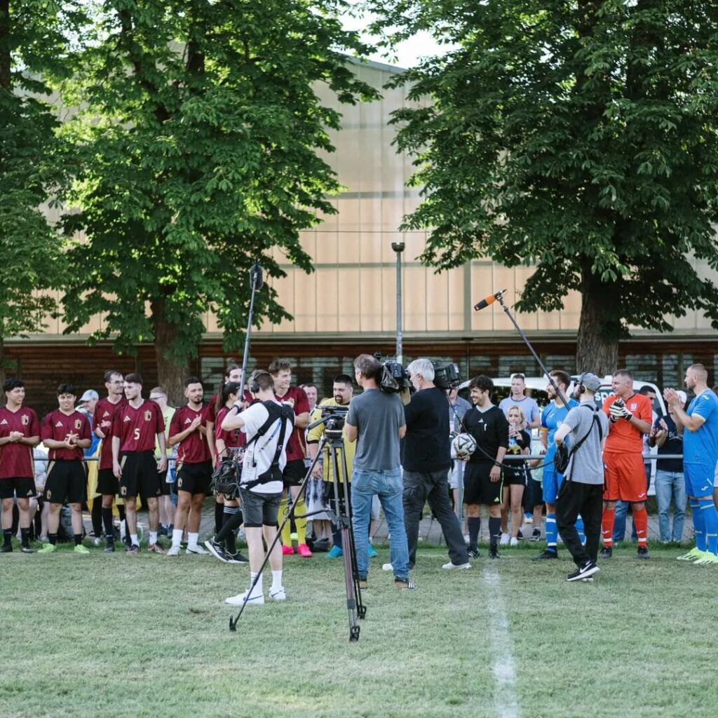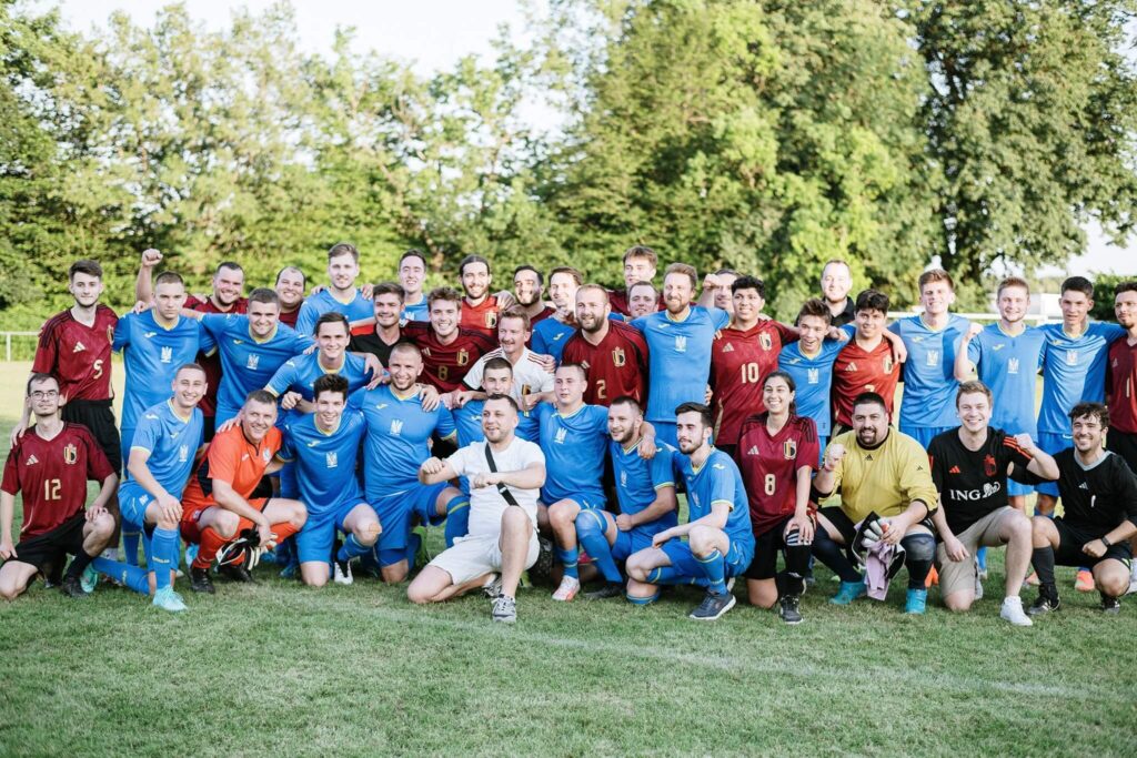 Ein Highlight war für uns natürlich das Entscheidungsspiel der Gruppe E, als wir unsere ukrainische Nationalelf direkt vor der Tür begrüßen und im Duell gegen Belgien anfeuern durften. So waren die Junta-Spieler im Vorfeld des Spiels an der Organisation des ukrainischen Meeting-Points im Stadtgarten beteiligt und haben in der Fan-Embassy mitgewirkt. Der Höhepunkt für uns was der Fan-Match mit den belgischen Anhängern, den wir mitorganisiert und aktiv mitgestaltet haben. Gut die Hälfte der Fanmannschaft wurden von uns gestellt. Das Spiel war gut besucht, es wurden Fanartikel verkauft und Spenden für gute Zwecke gesammelt. Bei gegrillten Würstchen, kühlen Getränken und eine super Atmosphäre wurde 3:1 Sieg gegen die Belgier gefeiert. Festgehalten wurde das ganze Event von einem ukrainischen Vlogger und sogar ZDF (hier ab 50:43 https://www.zdf.de/sport/fussball-em/fussball-em-2024-fans-in-deutschland-100.html).